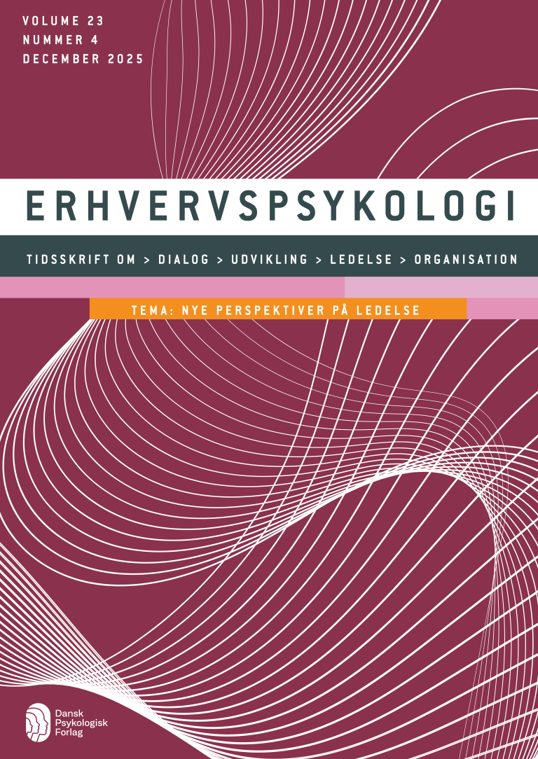 ERHVERVSPSYKOLOGI er et tidsskrift om den psykologiske dimension i arbejdslivet, hvis formål er at inspirere og opfordre til en velfunderet og mangfoldig dialog om psykologisk tænkning og metode.